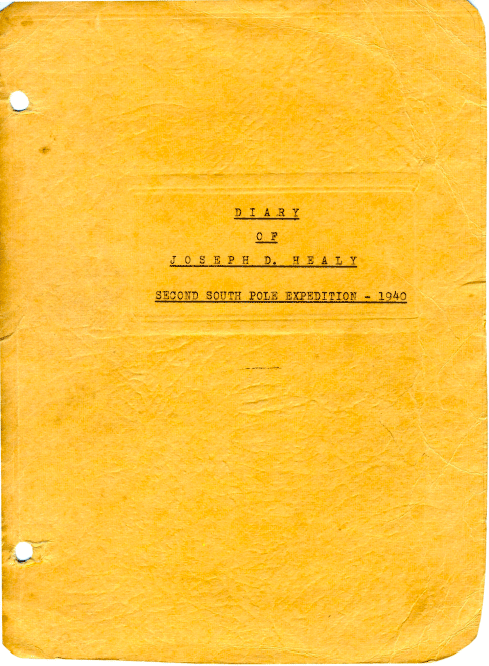 Joe's Antarctic diary as transcribed by his sister Judie St. Onge. The cover says "SECOND SOUTH POLE EXPEDITION 1940". It was Joe's second expedition having sailed with Byrd on the S.S. Jacob Rupert in 1933 - 1935. This was Byrd's third expedition and is known as the United States Antarctic Service Expedition.
