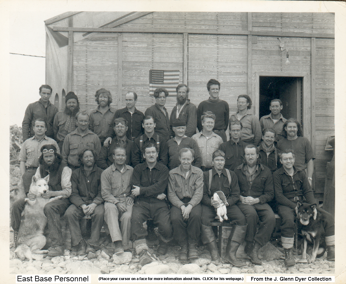There is a web site by Laura Snow and John Dyer (daughter and son of Ashley Snow and Glenn Dyer respectively), dedicated to the East Base of the United States Antarctic Service Expedition. Joe Healy is at the lower left with one of his dogs in the group photo on their site. | Click here for a larger version on this site.