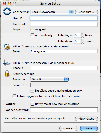 Where it says server in the login window it should have fc.mvyps.org
